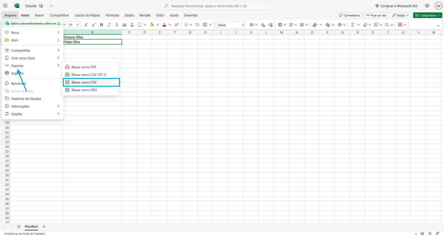 Nosso arquivo precisa conter duas colunas nesse caso, a primeira sempre será com os números e outra com o que a variável vai ser substituída, nesse caso com o nome do nosso cliente. Exemplo de como deve ser o documento para o upload: