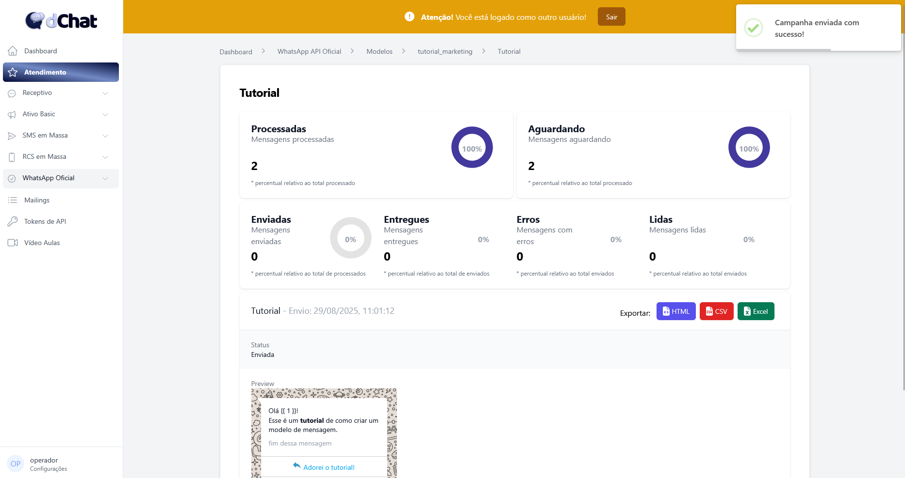 Agora que você já criou seu modelo de mensagem, pode começar a enviar campanhas!