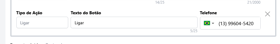 Ligar: Ao selecionar essa opção o cliente realizará uma ligação para o número que você definir;