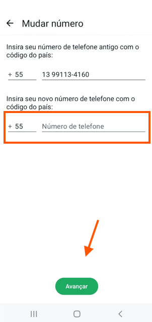 Preencha seu número em questão, o número para qual você deseja migrar e selecione a opção "Avançar" novamente.