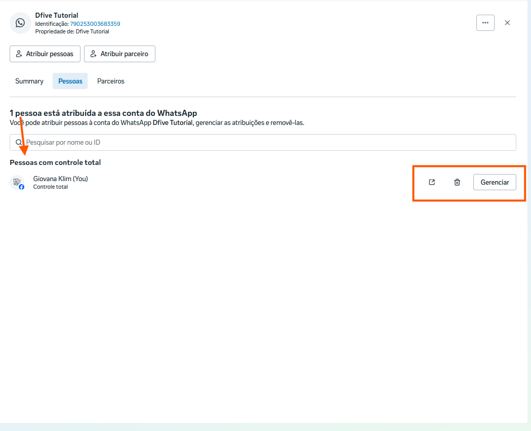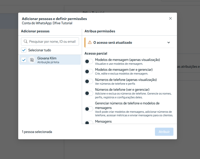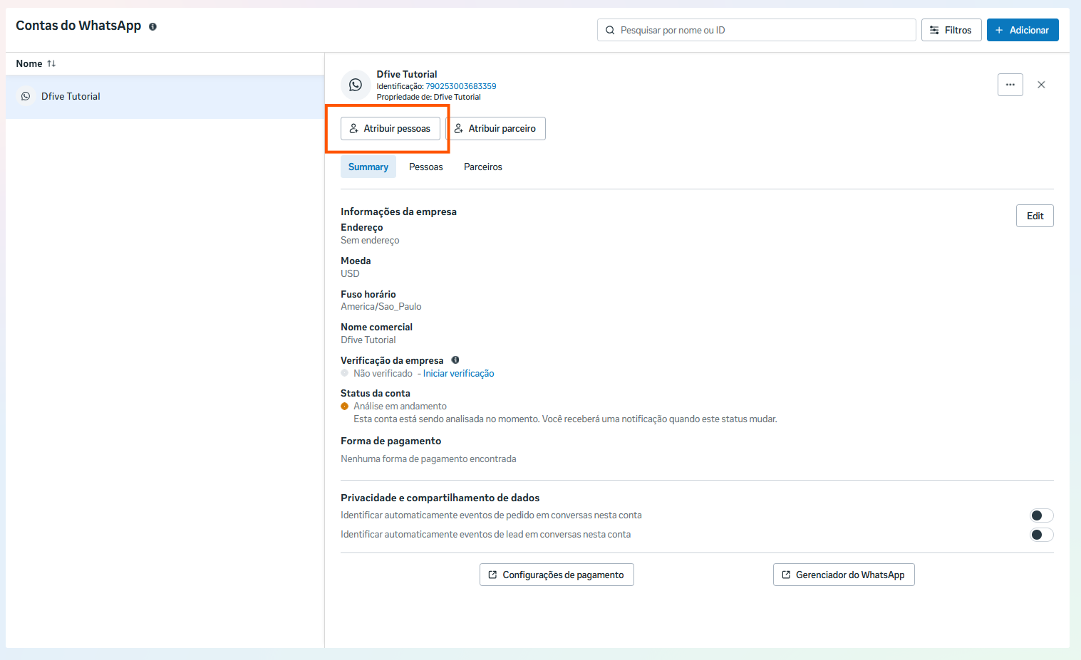 - Você também pode adicionar pessoas a sua conta ao selecionar o botão "Atribuir pessoas" localizado abaixo das informações da empresa
